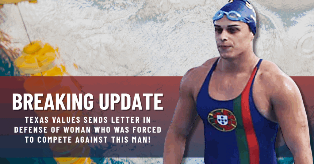 Breaking! Texas Values Sends Letter to Federal Government on Behalf of Texas Swimmer Who Competed Against Men in U.S. Masters Competition in San Antonio, Texas